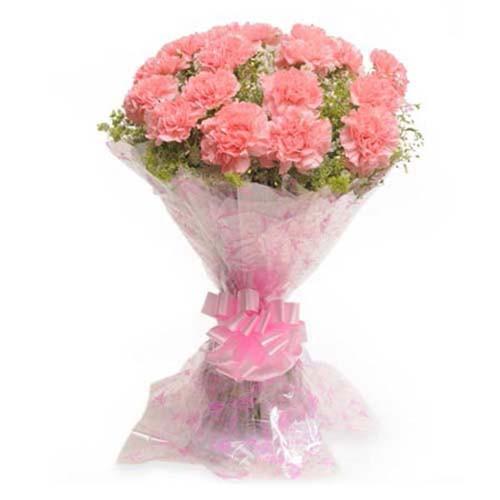 A symbol of love and care, a perfect gift for all occasions. 24 fresh pink carnations are hand picked and turned into this beautiful bouquet with pink wrapping papers.
