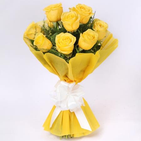 - Nicely Wrapped with Yellow Paper and White ribbon bow