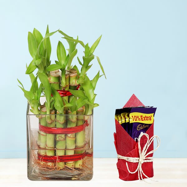 - 5 Cadbury Dairy Milk Chocolates (13 gms) nicely wrapped with Red paper and White ribbon