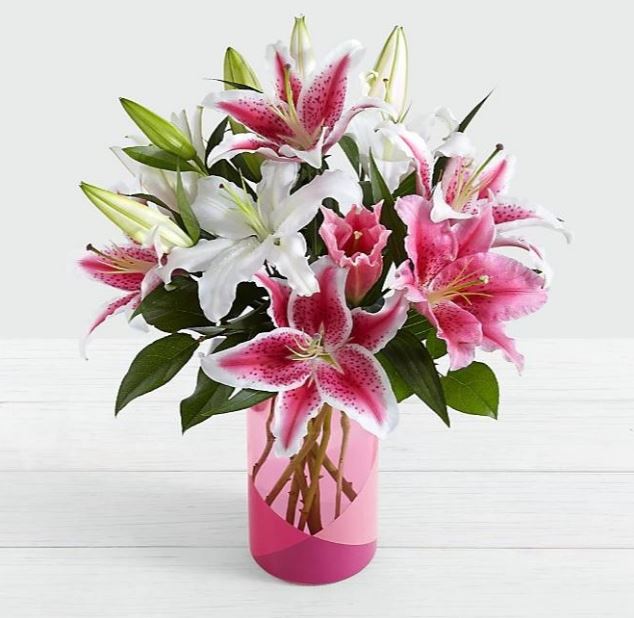 - 2 Stem White Oriental Lilies and 3 Stem Pink Oriental Lilies