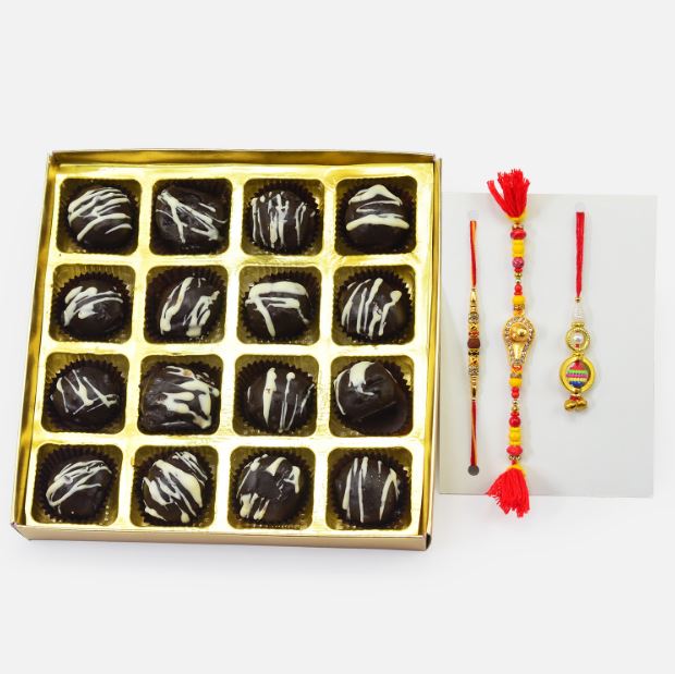 - Personalised Chocolate Box- 15 Pcs & One Rakhi & Set Of 3 Rakhi Set