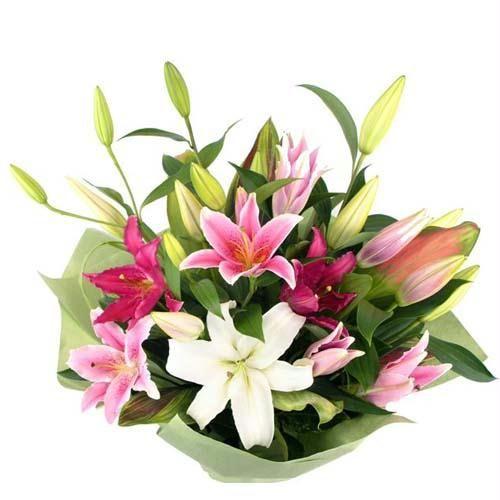 - 6 sticks Pink and White Oriental Lily bouquet for your loved ones.