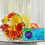 - 10 Fresh Mix Color Gerbera with seasonal fillers and leaves nicely wrapped in White and Yellow paper and Red ribbon bow