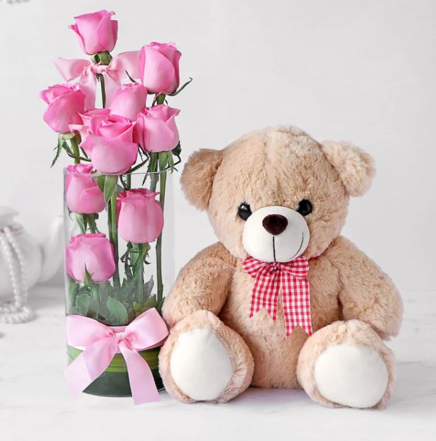 - 10 Pink Roses in vase
