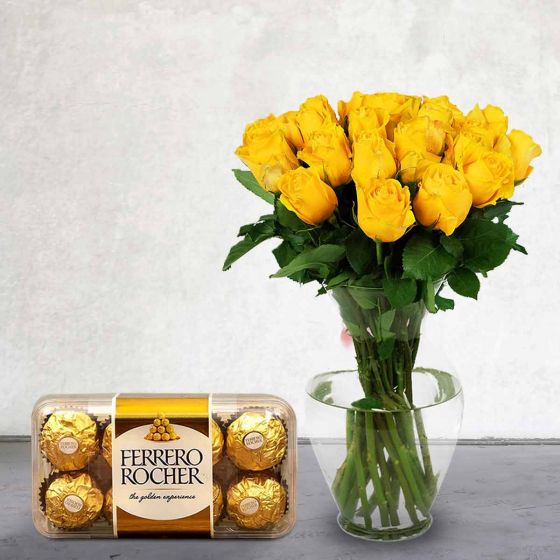 - 20 Yellow Roses vase
