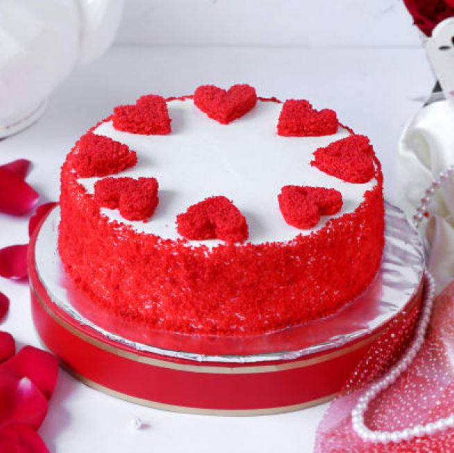 This Delicious cake contains: Half KG Red Velvet Cake Whipped cream Round Shape Note: The photos are indicative only. Actual design and arrangedment might differ based on chef, seasonal elements and ingRedient availability.