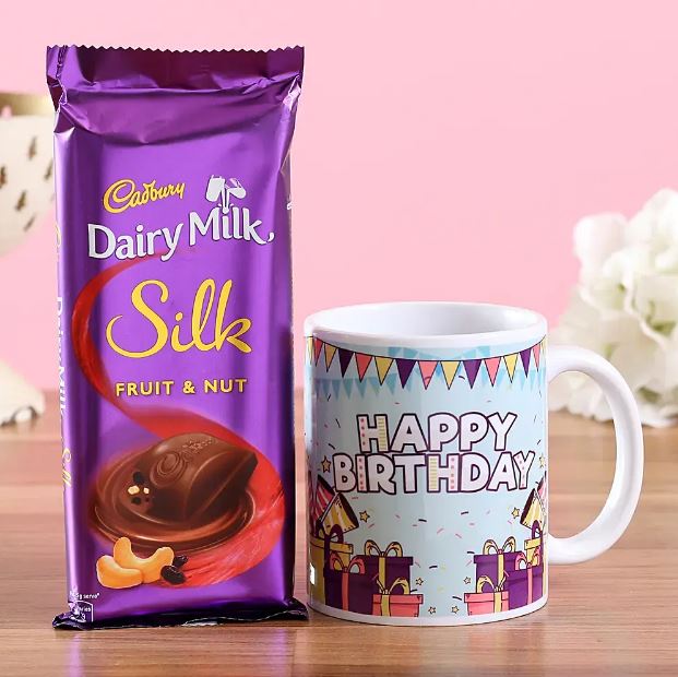 - One Printed Happy Birthday Mug,One Dairy Milk Silk (65gms)