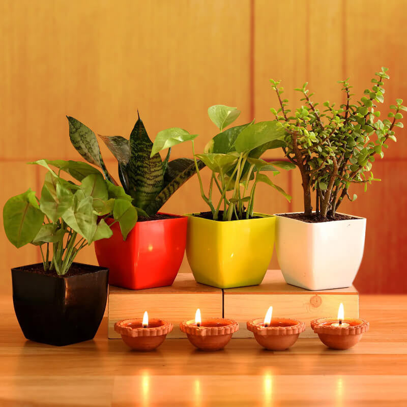 - One Money Plant,One Zade Plant,One Sanseveria Plant,One Syngonium Plant